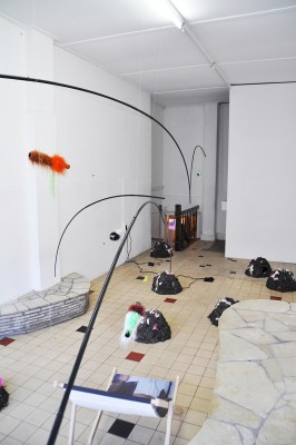 In ihrer Arbeit zum BA setzte sich Laura Sigrüner intensiv mit den Zusammenhängen von Bildhauerei und Fliegenfischen auseinander und fand darüber zu einem neuen formalen Element: der Angel.