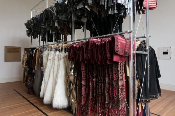 Reihenweise Kostüme aus der Deutschen Oper, die in ihrer Originalhängung ins Museum verfrachtet wurden und muffen.