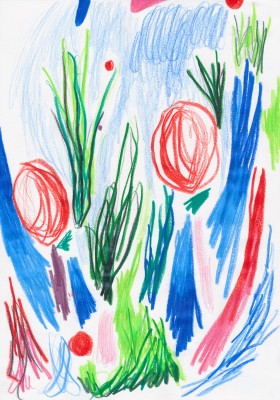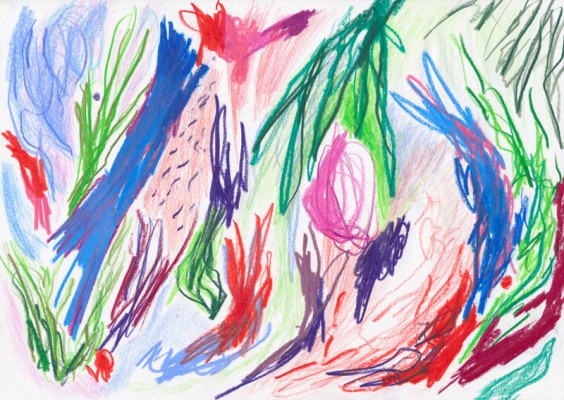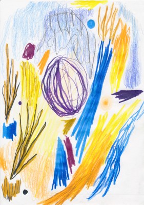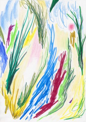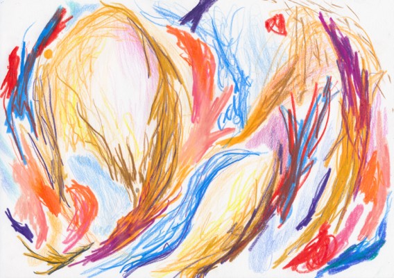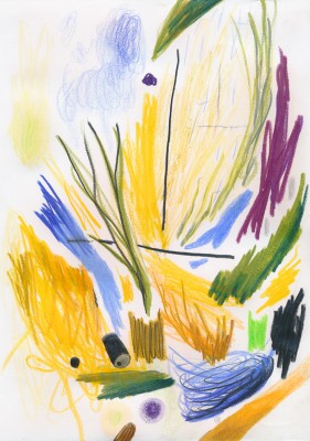 Lose Striche und Bewegungen auf hellen Flächen. Eher neben als übereinander.