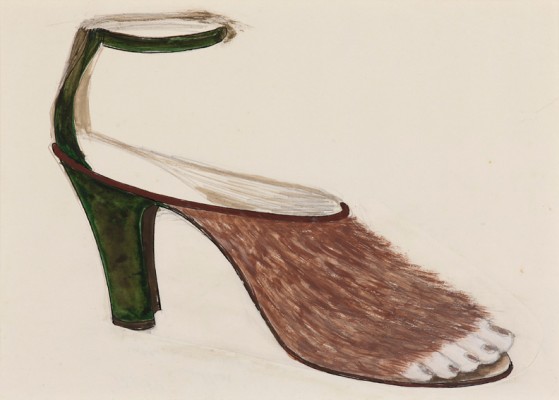 Die Ausstellung „Camp: Notes on Fashion“ im Metropolitan Museum of Art, fügt sich in die Reihe jährlich gezeigter Modeausstellungen des Anna Wintour Costume Institute in New York City, die jeden Mai von der legendäre Met Gala eröffnet wird. Basierend auf Susan Sontags Essay von 1964 „Notes on Camp“ wird der Begriff „Camp“ anhand von 250 Objekten aus dem 17. Jahrhundert bis heute, untersucht und bebildert. Die Ursprünge jener üppigen Ästhetik werden ebenso wie die Frage verhandelt, wie sich die Elemente von Humor, Ironie, Parodie, Theatralik und Übertreibung in der Mode ausdrücken. Ein Schuh sticht heraus: Das Objekt, in einer Glasvitrine präsentiert, ist aus Kunstfell, zart rosa der Absatz, zart pink das Schuhbett. Ein Design von Phoebe Philo für Céline's Frühjahrskollektion 2013. Es wirkt neben den extravaganten, exzentrischen, sich gegenseitig die Show stehlenden Roben, Kleidern, Anzügen Hüten und Schuhen (wie z.B. einem Kopfschmuck aus zwei sich anblickenden Flamingos von Stephen Jones für House of Schiaparelli, Herbst/Winter 2018/19, Haute Couture) gleichsam als Relikt eines anderen ästhetischen Bewertungsapparats. Er hat etwas Rohes, versucht nichts weiter zu sein, als ein Stöckelschuh mit Fell überzogen und trägt doch eine Narration oder einen Charakter in sich. Ein Wesen das sich aufplustert, aus einem Schutzinstinkt heraus oder um aus anderen Gründen größer zu erscheinen. Der Céline-Schuh ist für den Begriff „Camp“ ein vielleicht unpassend gewähltes Beispiel. Das Objekt trägt keinerlei Selbstironie oder schrilles Lachen in sich. Nicht zuletzt in Gedenken an Meret Oppenheims Zeichnung „Projekt für Sandalen„ (undatiert) und ihre bekannten Fell-Arbeiten bekommt der Schuh eine eigene politische Stimme.
