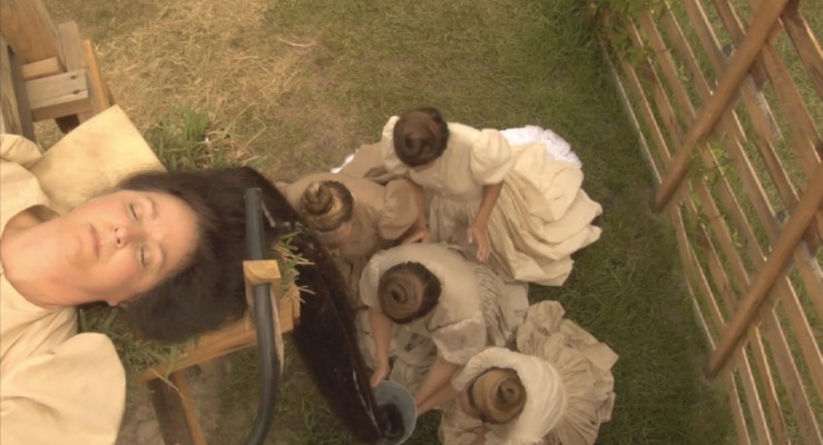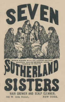Die Seven Sutherland Sisters lebten in der zweiten Hälfte des 19. Jahrhunderts in Niagara Country, New York. Sie sind bekannt für ihr außerordentlich langes Haar und verdienten sich durch die Erfindung eines Haarpflegemittels ihr Vermögen. Sie warben selber mit ihrer Haarpracht, reisten durchs Land und verkauften ihr Produkt Seven Sutherland Sisters Hair Grower. Die argentinische Künstlerin Mika Rottenberg arbeitet in ihrer Videoinstalllation Cheese (2008) die Geschichte der Seven Sutherland Sisters auf. In ihrem Sieben-Kanal-Video melken die Protagonistinnen ihr langes Haar, übergießen es in einer bestimmten Vorrichtung mit Flüssigkeit und produzieren durch eine Art Destillations-Vorgang ein Haarwasser, welches direkten Bezug nimmt zu dem genannten Erzeugnis der Seven Sutherland Sisters. Die Probleme und Eigenarten der Darstellerinnen im Zusammenleben mit ihren überlangen Haaren, welche Rottenberg in einem Interview zu ihrer Arbeit beschreibt (zB. die auch in Wirklichkeit sehr langen Haare der Darstellerinnen brauchten 24 Stunden um zu trocknen und verzögerten somit die Dreharbeiten) [2] sind der Grund für eine Reihe (feministischer) Vereinigungen und Foren im Netz, anhand derer die Künstlerin auch ihre Performerinnen ausfindig machte.