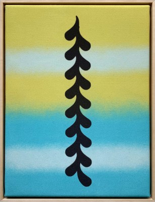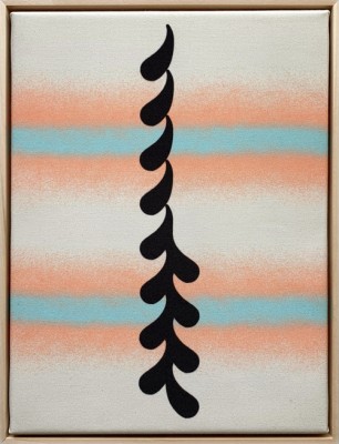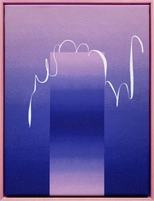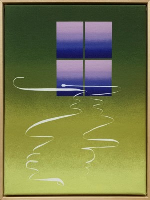 The digital painting könnte endlos weiter gemalt werden. Allein der Druckprozess definiert die endgültige Fassung. Die Pixel werden in Tinte übersetzt und an zu ihrem Bestimmungsort – die Leinwand – zurück überführt. Einfache Holzleisten schließen den fließenden Prozess ab. Der schwebend-wirkende Zustand wird festgehalten.
