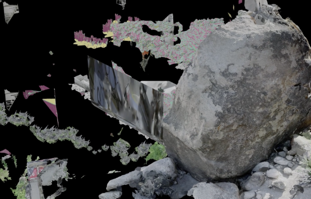 »Praxis der Orte« näherte sich 2023 fragend dem Wesen, den Kräften und den Perspektiven von Orten jenseits ihrer Funktion. Eine Auswahl an Un-Orten wurden mit Scannern gesammelt, in einem digitalen Archiv choreografiert und in einer gescheiterte Shopping Mall per Projektion neu platziert. Begleitend wurde mit sechs künstlerischen Positionen kooperiert und verschiedenste Qualitäten und Handlungen der Orte hervorzuheben.