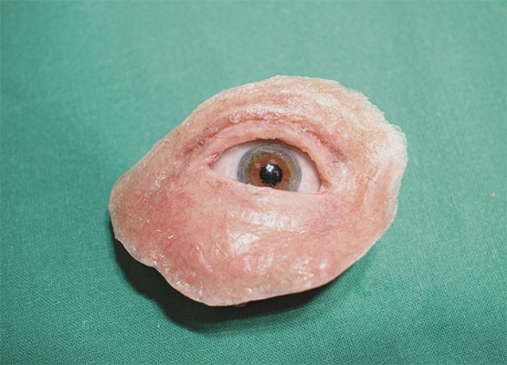 ( A ) Eine Epithese bedeutet „das Aufgesetzte“ und sie übernimmt oder unterstützt nicht die Funktion eines fehlenden Körperteils wie Bein- oder Armprothesen es machen. Ihre Funktion ist eher augenscheinlich und sie kommt oft im Gesicht zur Anwendung, wenn zum Beispiel Teile davon aufgrund eines Unfalls fehlen. Die Epithese wird aus Kunststoffen maßangefertigt, damit sie passgenau im Gesicht integriert werden kann.