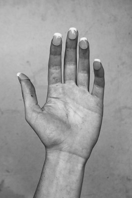 ( M ) So, wie wenn man den Fingernägeln ihre Funktion wegnimmt, wenn man sie umdreht. Dann hat man plötzlich ein Bild, das eher narrativ ist und etwas anderes suggeriert.