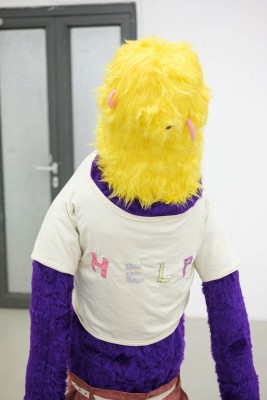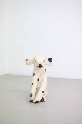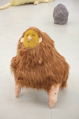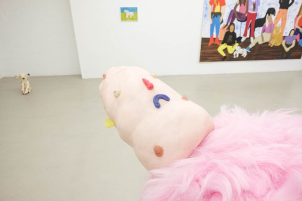 Freundschaftsbeziehungen pendeln stets zwischen starken Gefühlen der Vertrautheit und der Fremdheit. Die Schwingung dazwischen beschreibt gut die Grundstimmung der Arbeiten von Theresa Rothe: Sie sind ‚creepy‘ und ‚cute‘, lösen Aversion und Zuneigung aus. Es sind Figuren wie aus einem Wachtraum, die man kennenlernen möchte, vor denen man sich aber auch ein bisschen fürchtet. Ihr Zucken und Ruckeln provoziert Respekt, aber auch Faszination: Sind sie gut oder böse? In beide mögliche Realitäten kann man sich gleichermaßen hineinbegeben. Dieser Effekt gelingt Theresa Rothe durch ihren außergewöhnlichen Umgang mit Materialen und Geräten. Bekannte Werkstoffe werden ihrem üblichen Zweck entfremdet. Schon mal von einer Beflockungsmaschine gehört? Was eigentlich zum Auftragen eines Rasens für den Modellbau verwendet wird, nutzt Rothe für das Inkarnat, die Gesichtshaut einer ihrer Figuren.