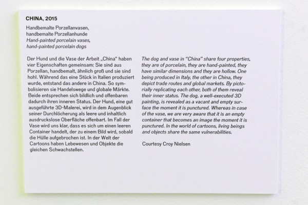 Bleibt die Frage: Wer hat die Texte auf den Schildern geschrieben? Beier selbst, und sind sie Teil der Arbeiten – oder das kuratorische Team? Und wenn das letzte der Fall ist, waren sie mit im Spiel oder wurde ihnen genau so etwas vorgegaukelt wie dem Durchschnittsbesucher? Entweder oder, beides tut weh.