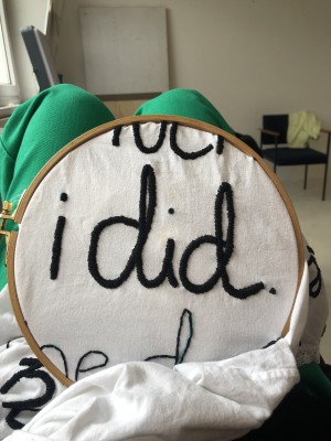 Die Nadel, die sich meditativ ihren Weg durch den Stoff bahnt.
